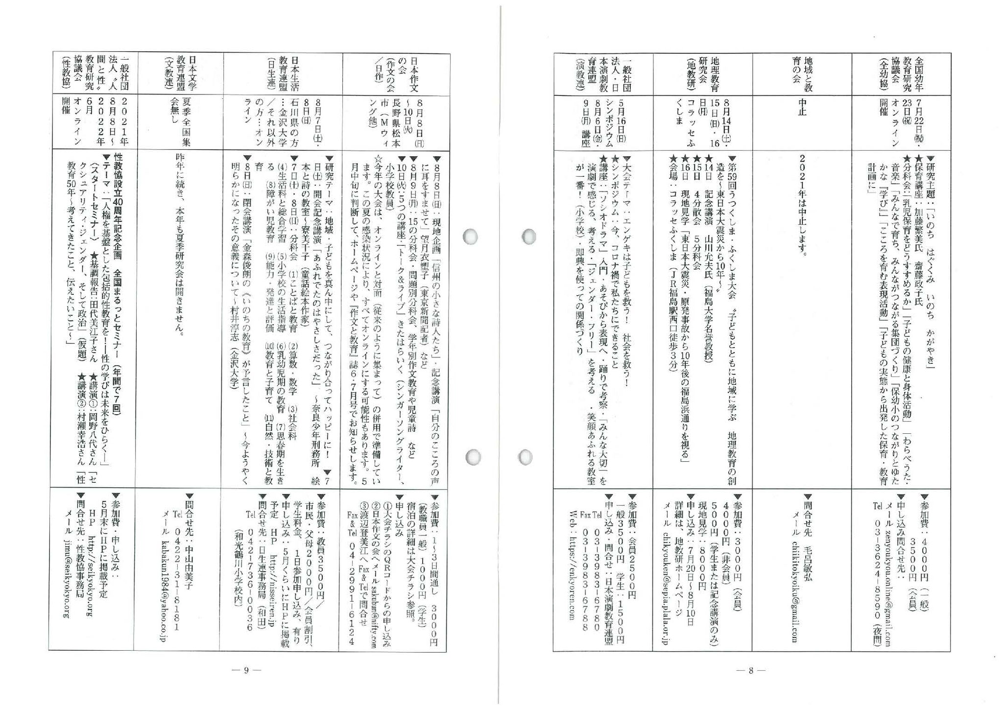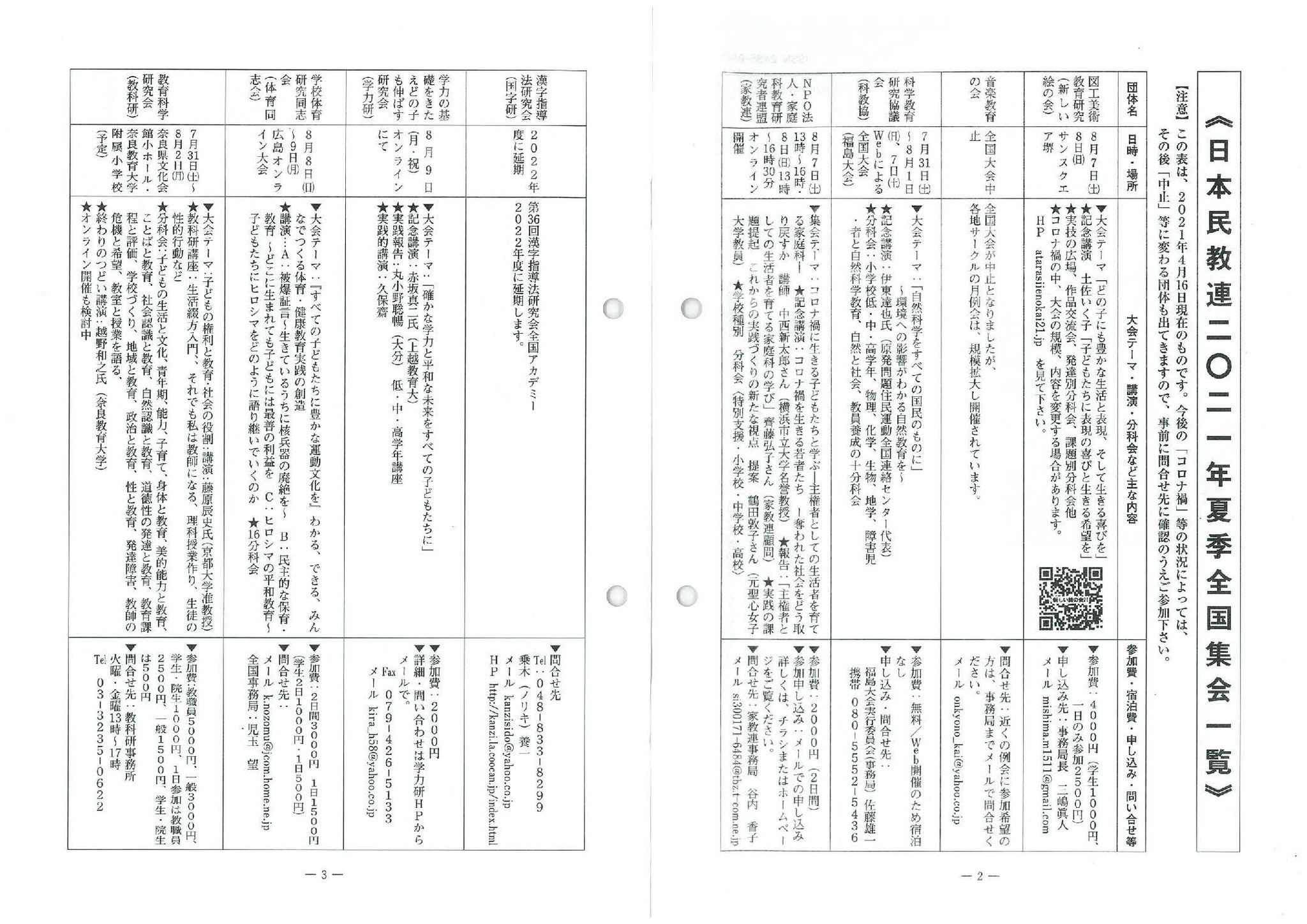 【ダウンロード】2021年民教連夏季全国集会一覧